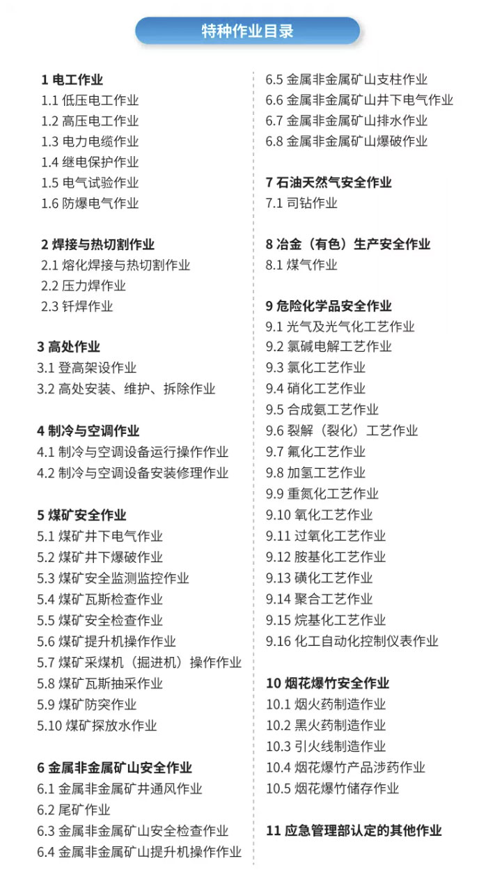 重新界定了特種作業(yè)目錄,如高壓電工作業(yè)會覆蓋低壓電工、取消防爆電氣作業(yè)等;