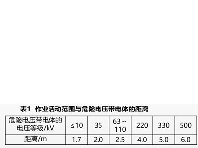 作業(yè)活動范圍與危險電壓帶電體距離小于表1的規(guī)定;