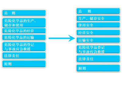 危險(xiǎn)化學(xué)品安全管理?xiàng)l例內(nèi)容變化: 由7章74條,變成了8章102條