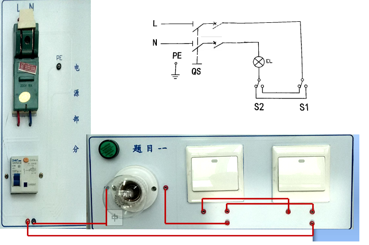 【試題一】兩只雙聯(lián)開關(guān)控制單只白熾燈照明線路