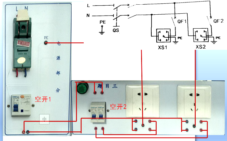 【試題三】兩路單只開關(guān)分別控制兩只10A五孔插座線路