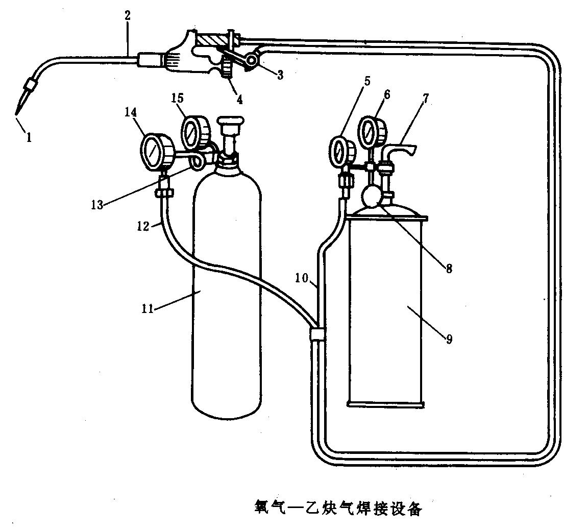 乙炔氣調(diào)節(jié)閥門,后關(guān)閉氧氣調(diào)節(jié)閥門,焊槍的噴火嘴會發(fā)出爆炸聲。
