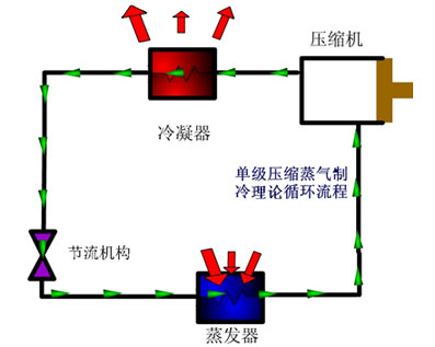 蒸發(fā)器:吸收熱量(輸出冷量)而制冷;