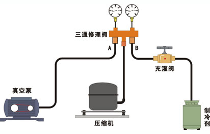 ③對于單表修理閥,抽真空后關(guān)上修理閥,在移去真空泵、接上制冷劑鋼瓶充灌制冷劑時,應(yīng)注意把管內(nèi)的空氣排去。