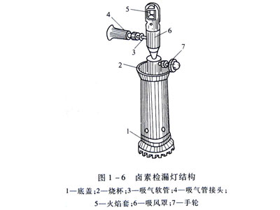 鹵素檢漏燈的結(jié)構(gòu)主要由底蓋、燒杯、燈芯筒火焰圈、吸氣軟管及其他輔助件組成。鹵素檢漏燈是電冰箱修理中最常用的檢漏工具,它用酒精、乙炔和丙烷作燃料。檢漏的原理是:當(dāng)混有5%—10%的氟利昂氣體與熾熱的銅接觸時,氟利昂分解為氟、氯元素并和銅發(fā)生化學(xué)反應(yīng),成為鹵素銅的化合物,使火焰的顏色發(fā)生變化,從而檢查出氟利昂泄漏。火焰的顏色與泄漏量有關(guān)系。